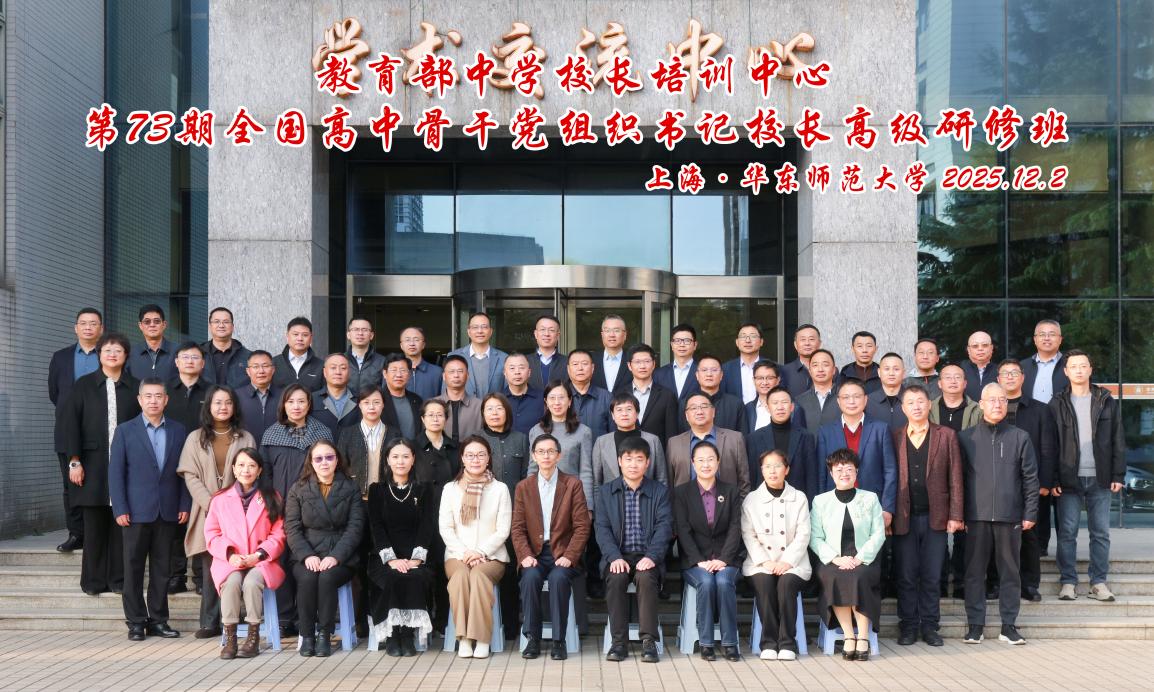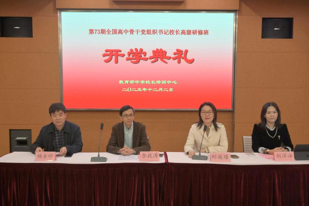 2025年12月2日上午,教育部中学校长培训中心第73期全国高中骨干党组织书记校长高级研修班在华东师大校长培训中心三楼多功能厅举行开班仪式,培训中心主任李政涛、副主任郅庭瑾、主任助理杨全印、刘洋洋老师等出席仪式。来自30个省市自治区和新疆建设兵团的50位高中党组织书记、校长参与本次研修。开班仪式由郅庭瑾副主任主持。