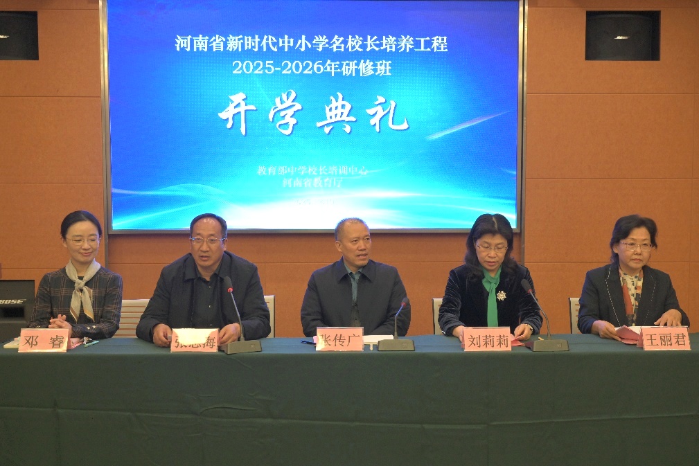 2025年12月10日上午,河南省新时代中小学名校长培养工程(2025-2026)启动仪式在教育部中学校长培训中心三楼多功能厅举行。河南省教育厅党组成员、副厅长张传广,校长培训中心副主任刘莉莉教授,河南省教育厅人事处三级调研员张志海,河南省校长培训工作办公室主任王丽君,校长培训中心主任助理邓睿博士,河南省教育厅人事处三级主任科员王一如等出席开班典礼。来自河南省的50位中小学名校长参加本次研修。开班典礼由张志海主持。