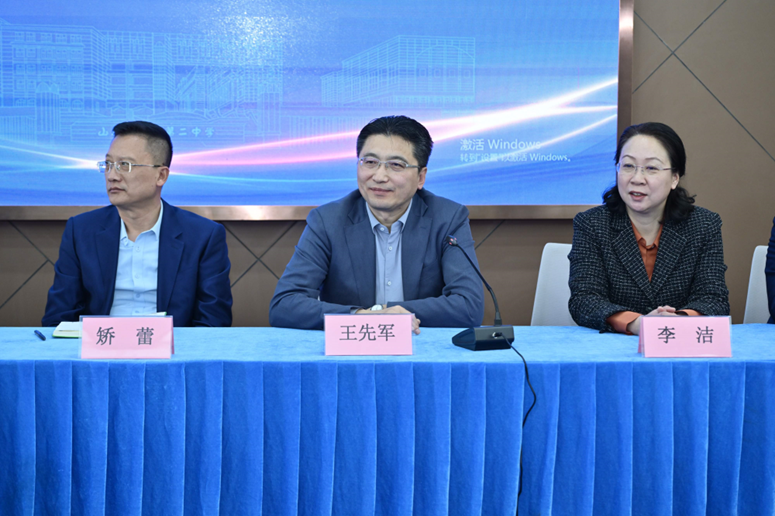 作为教育部新时代中小学名校长培养计划(2022-2025)人选,青岛二中校长王先军自2022年10月起担任“王先军名校长工作室”主持人。活动中,王先军及学校班子成员首先进行了工作室中期答辩。王先军从学校整体情况、办学管理思考、未来发展规划等方面,系统展示了近年来二中的发展成果,并分享了其作为名校长培养计划人选在办学管理中的系统性思考。