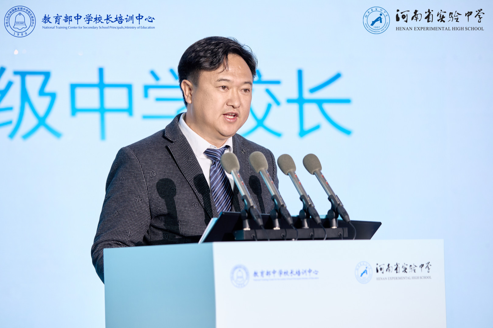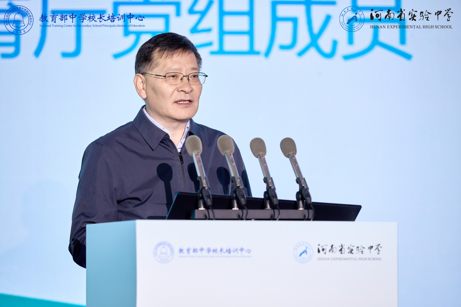 河南省委教育工委专职副书记、省教育厅党组成员刘林亚讲话。他指出,河南作为全国教育人口第一大省,正全力推动基础教育由规模扩张向内涵提升转变、由“有学上”向“上好学”跨越。本次研讨会在“十五五”开局起步、教育强国建设纵深推进的关键时期举办,恰逢其时、意义深远。他强调,中学教育是人才培养的关键环节,校长是学校发展的“领头雁”,希望与会专家、校长坚守立德树人初心,落实健康第一理念,强化改革创新动力,深化思政教育与办学特色融合,完善五育并举育人机制,推进教育数字化转型与校家社协同育人,形成更多可复制、可推广的实践经验,为基础教育高质量发展贡献智慧与力量。刘林亚对河南省实验中学构建“科技+学术”育人体系、推进高效能治理、培育拔尖创新人才等探索与成果给予充分肯定,并希望与会专家、校长以省实验中学的实践为样本,加强研讨、碰撞思想、凝聚共识,为基础教育办学样态的持续优化贡献金点子、大智慧。