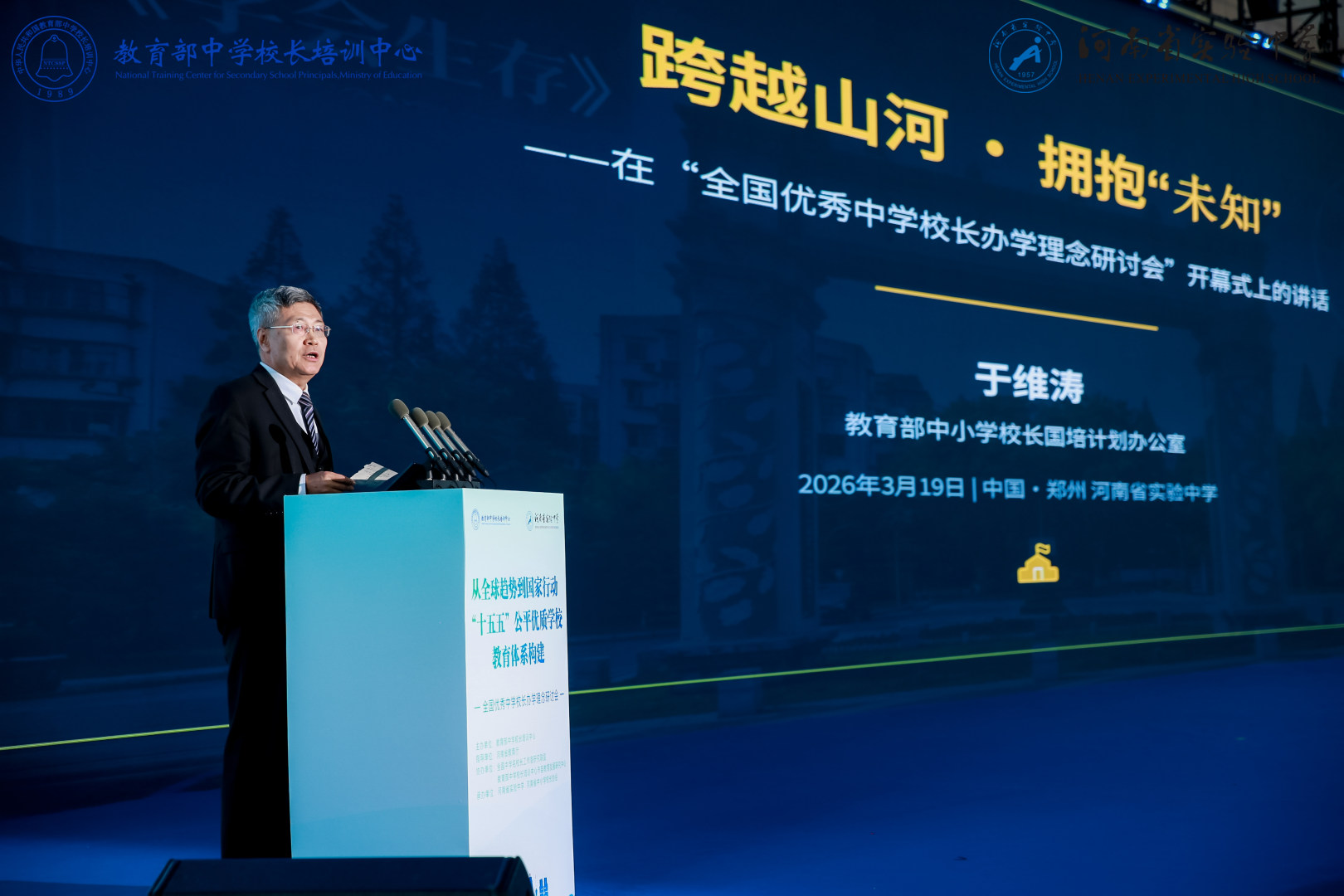 春潮涌动黄河之滨,教育聚力共谱新篇。3月20日,由教育部中学校长培训中心主办、河南省教育厅指导、全国中学名校长工作室研究联盟、教育部中学校长培训中心市县教育发展研究中心等单位协办、河南省实验中学与河南省中小学校长协会共同承办的全国优秀中学校长办学理念研讨会在郑州隆重召开。本次研讨会以“从全球趋势到国家行动——‘十五五’公平优质学校教育体系构建”为主题,汇聚来自全国各地的近千名优秀中学校长、教育领域专家学者,聚焦教育强国建设、高效能学校治理、拔尖创新人才培养、教育数字化转型等重大课题,共商育人路径、共促理念创新、共推基础教育高质量发展。