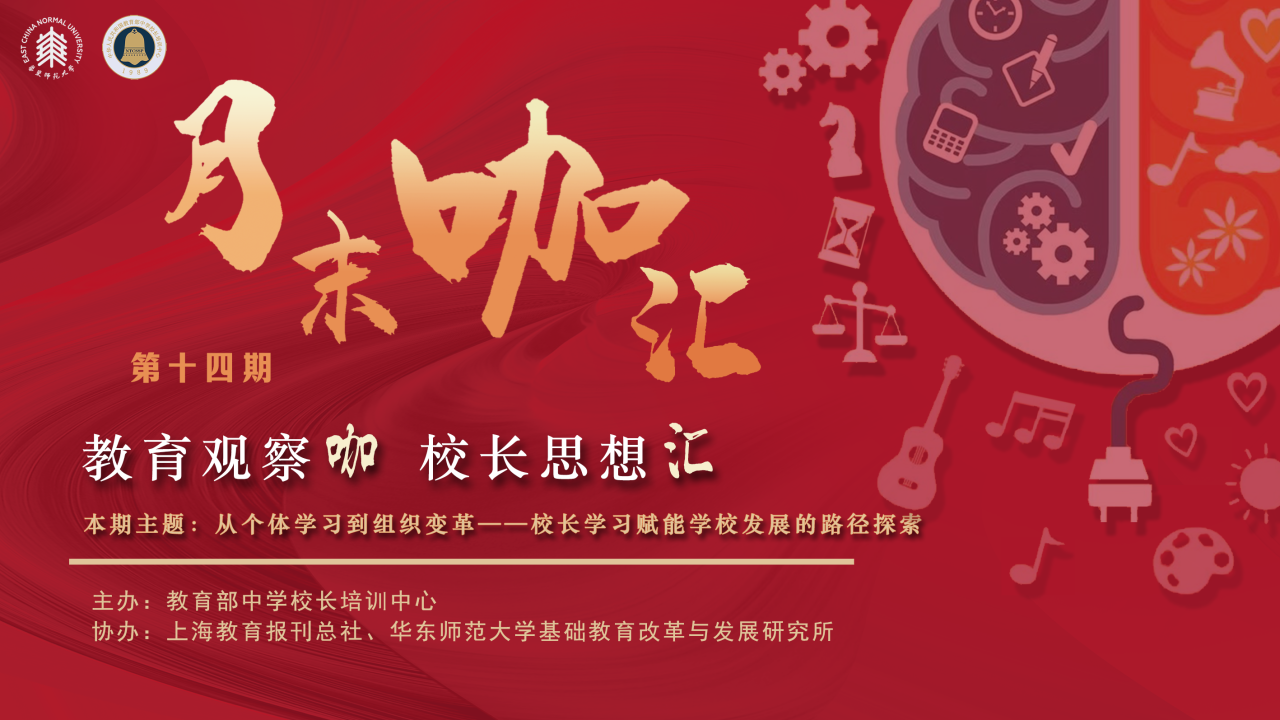 为深入贯彻全国教育工作会议精神,弘扬教育家精神,推动校长学习成果向学校组织变革的有效转化,教育部中学校长培训中心将于2026年4月28日在华东师范大学举办第十四期“月末咖*汇”,主题为“从个体学习到组织变革——校长学习赋能学校发展的路径探索”。